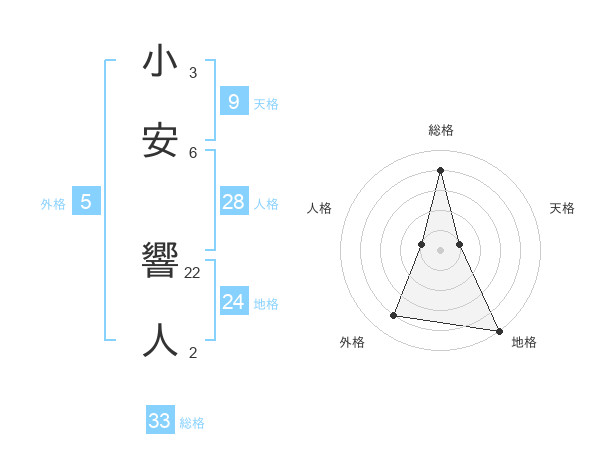 小安 響人さんの総格は33画の4点!