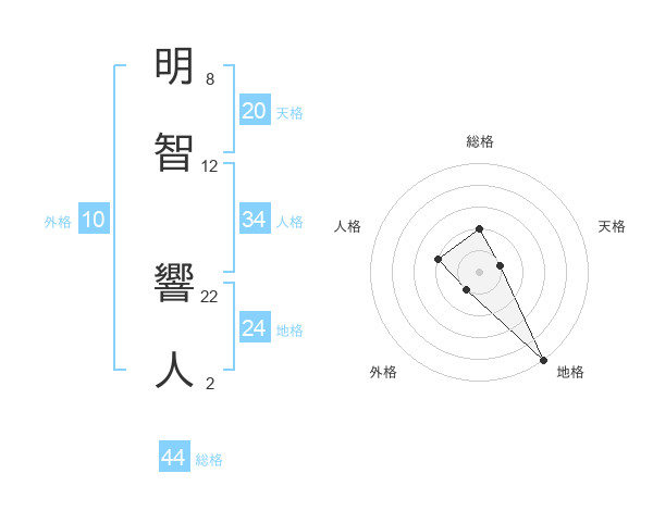 明智 響人さんの総格は44画の2点!