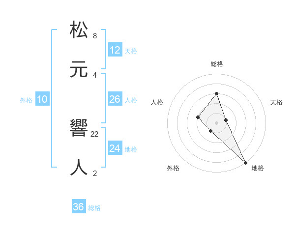 松元 響人さんの天格は12画の1点!