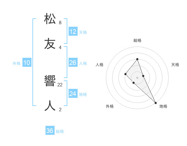 松友 響人さんを姓名の画数から五運を鑑定