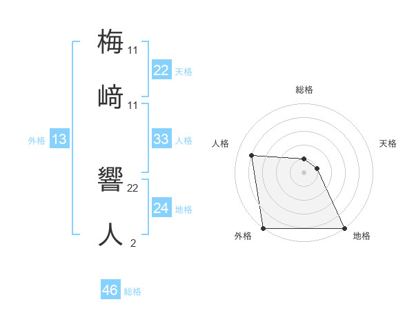 梅﨑 響人さんを姓名の画数から五運を鑑定
