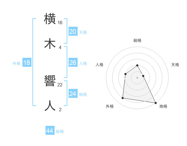 横木 響人さんの総格は44画の2点!