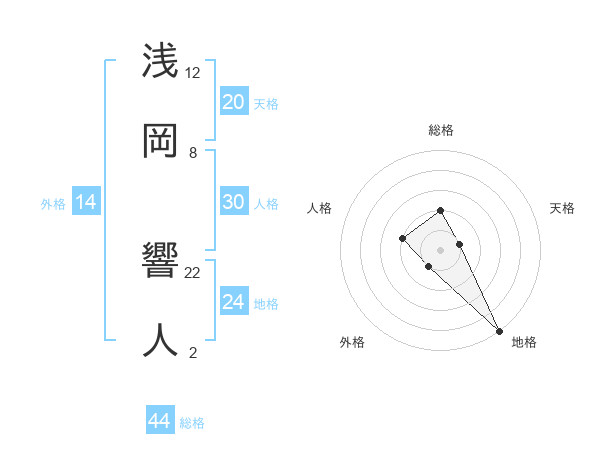 浅岡 響人さんを姓名の画数から五運を鑑定