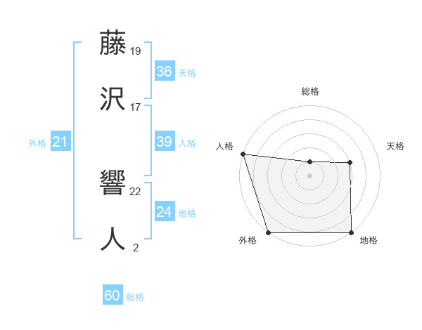 藤沢 響人さんの外格は21画の5点!
