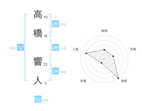 高橋 響人さんの総格は50画の2点!