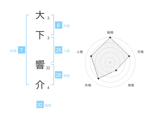 大下 響介さんの総格は32画の5点!