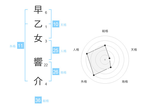 早乙女 響介さんを姓名の画数から五運を鑑定