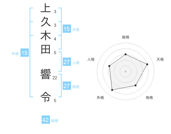 上久木田 響令さんを姓名の画数から五運を鑑定