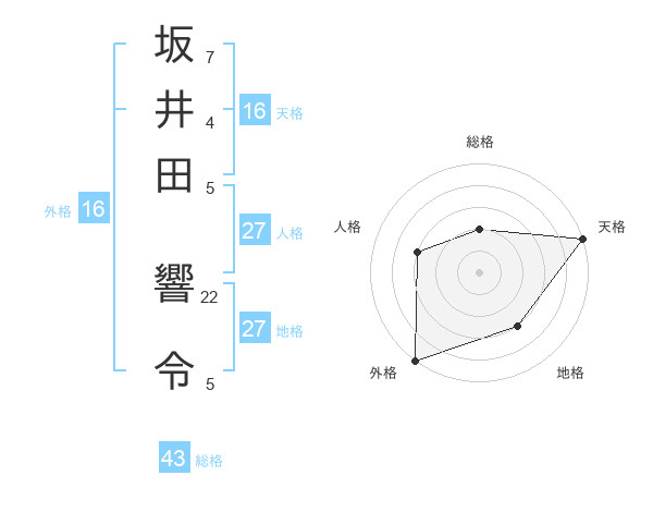 坂井田 響令さんを姓名の画数から五運を鑑定
