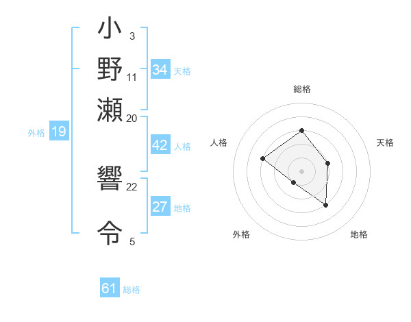 小野瀬 響令さんを姓名の画数から五運を鑑定