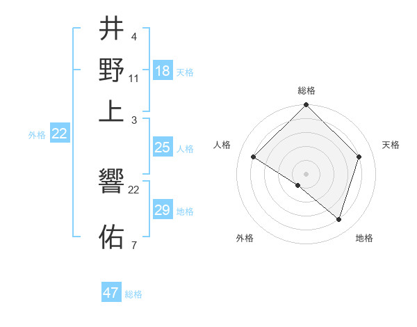 井野上 響佑さんを姓名の画数から五運を鑑定