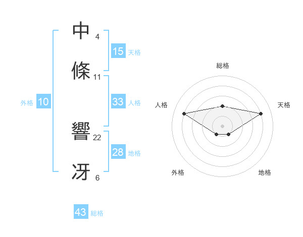 中條 響冴さんの総格は43画の2点!