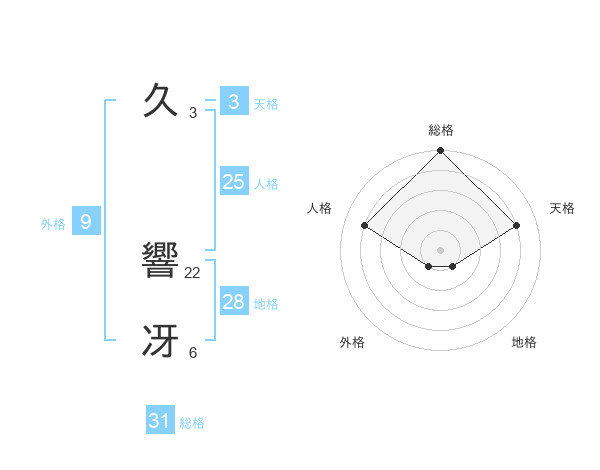 久 響冴さんの総格は31画の5点!