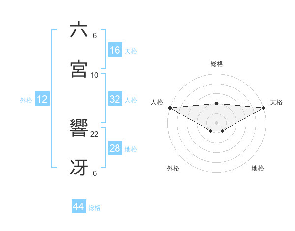 六宮 響冴さんを姓名の画数から五運を鑑定