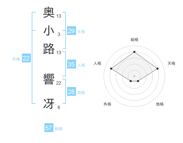 奥小路 響冴さんを姓名の画数から五運を鑑定