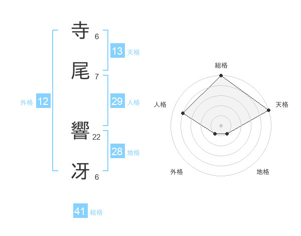 寺尾 響冴さんの総格は41画の5点!