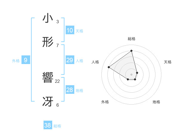 小形 響冴さんの総格は38画の4点!