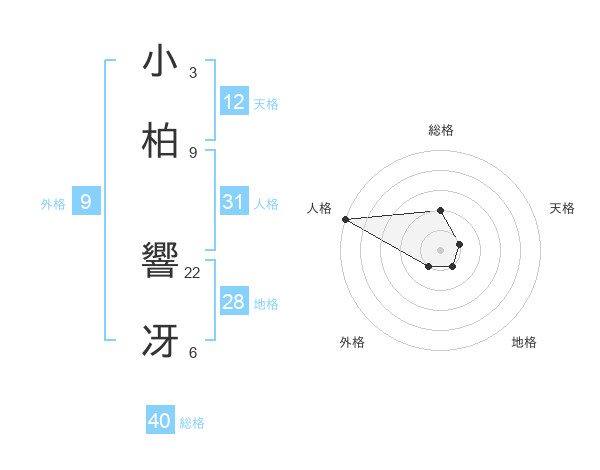 小柏 響冴さんの人格は31画の5点!