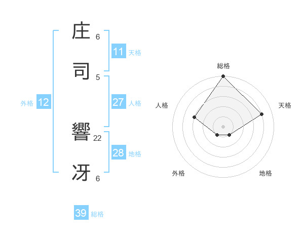 庄司 響冴さんの総格は39画の5点!
