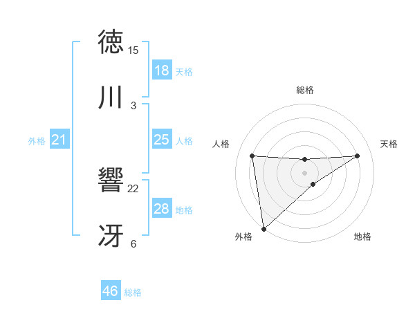 徳川 響冴さんの総格は46画の1点!