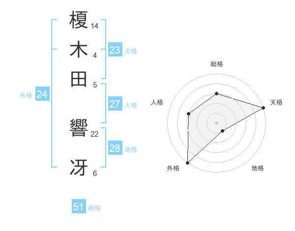 榎木田 響冴さんの総格は51画の3点!
