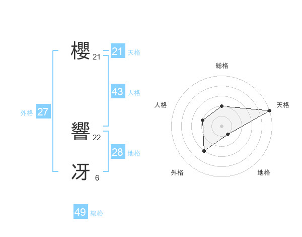 櫻 響冴さんの天格は21画の5点!