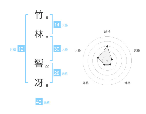 竹林 響冴さんの総格は42画の3点!