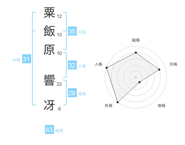粟飯原 響冴さんの外格は31画の5点!