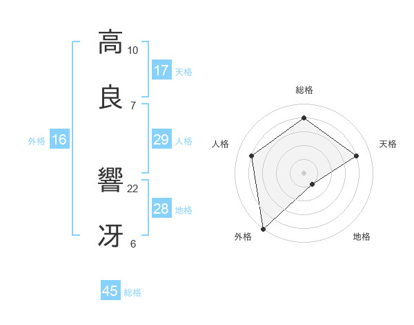 高良 響冴さんの総格は45画の4点!