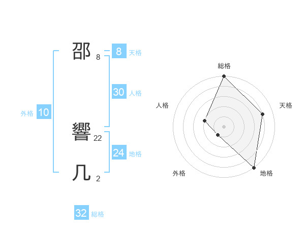 邵 響几さんの総格は32画の5点!