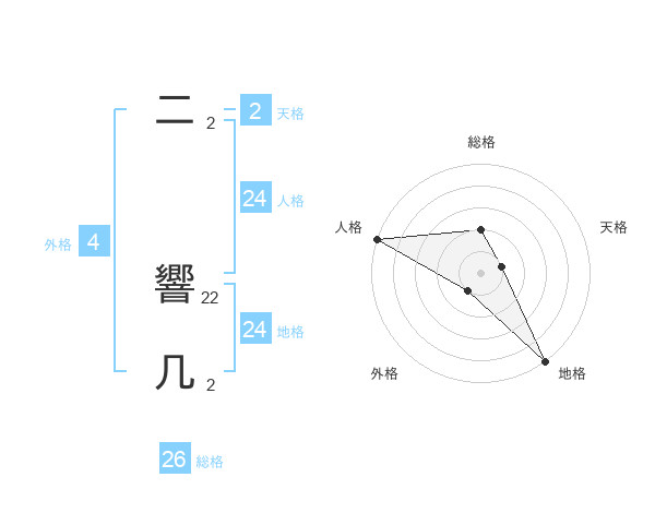 二 響几さんの地格は24画の5点!