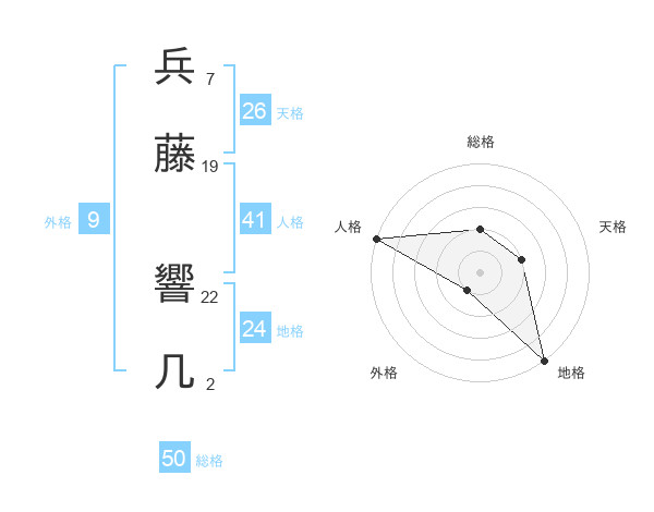 兵藤 響几さんを姓名の画数から五運を鑑定