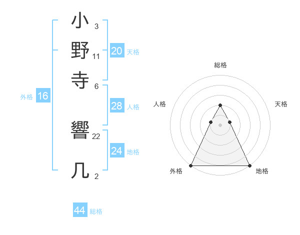 小野寺 響几さんの総格は44画の2点!