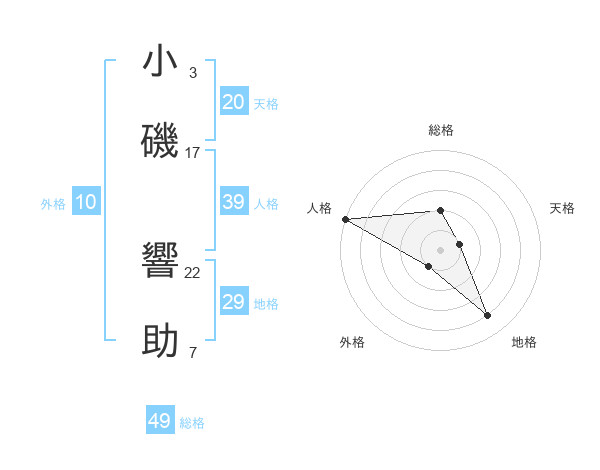 小磯 響助さんの総格は49画の2点!
