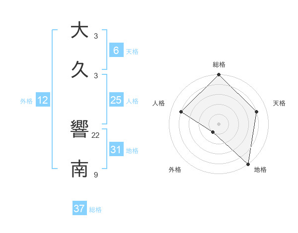 大久 響南さんの総格は37画の5点!