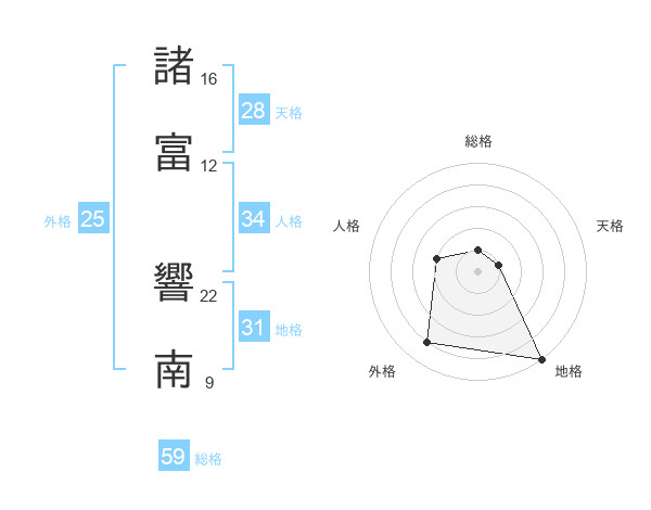 諸富 響南さんの外格は25画の4点!