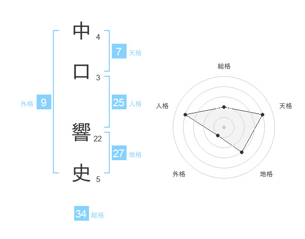 中口 響史さんの総格は34画の2点!