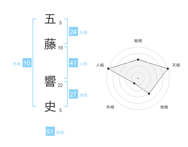 五藤 響史さんの総格は51画の3点!