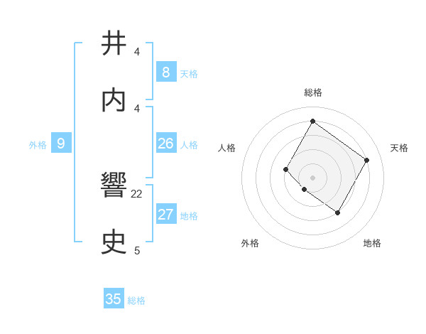 井内 響史さんの総格は35画の4点!