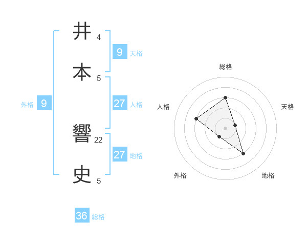 井本 響史さんの地格は27画の3点!
