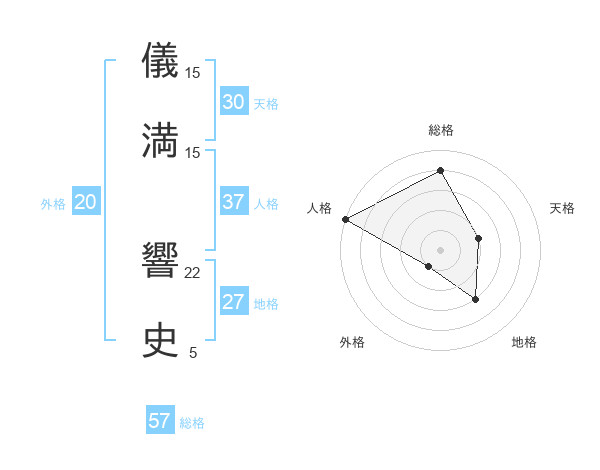 儀満 響史さんの総格は57画の4点!