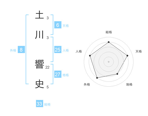 土川 響史さんの総格は33画の4点!