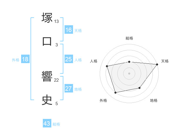 塚口 響史さんの天格は16画の5点!