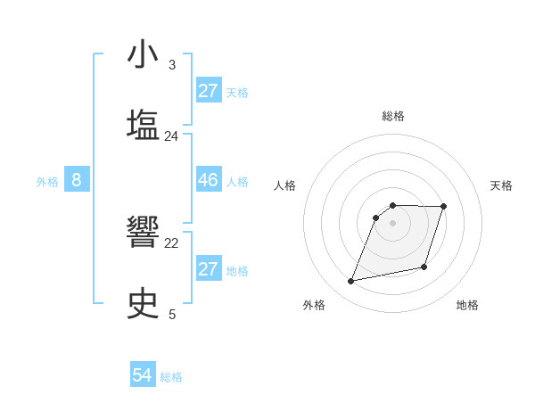 小塩 響史さんの総格は54画の1点!