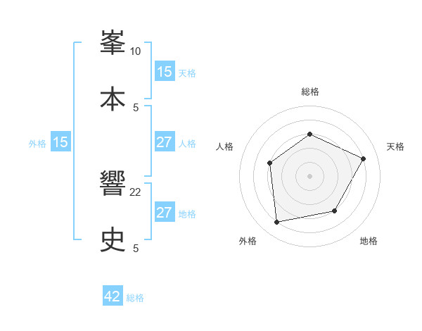 峯本 響史さんを姓名の画数から五運を鑑定