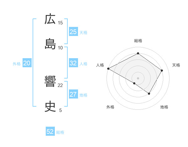 広島 響史さんの総格は52画の4点!