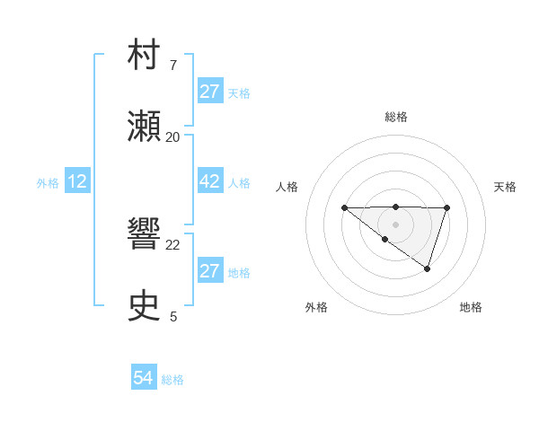 村瀬 響史さんの総格は54画の1点!
