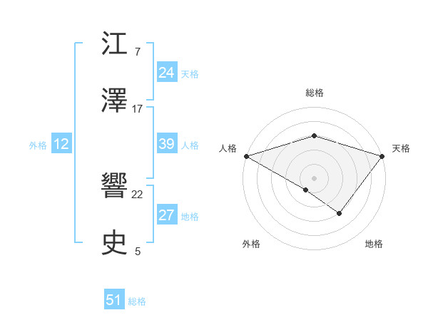 江澤 響史さんの総格は51画の3点!
