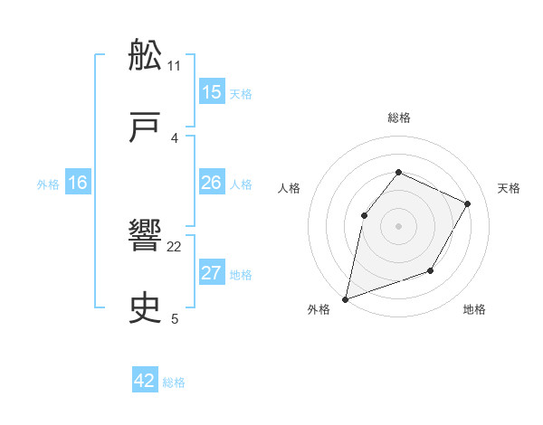 舩戸 響史さんを姓名の画数から五運を鑑定