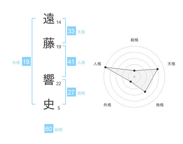 遠藤 響史さんを姓名の画数から五運を鑑定
